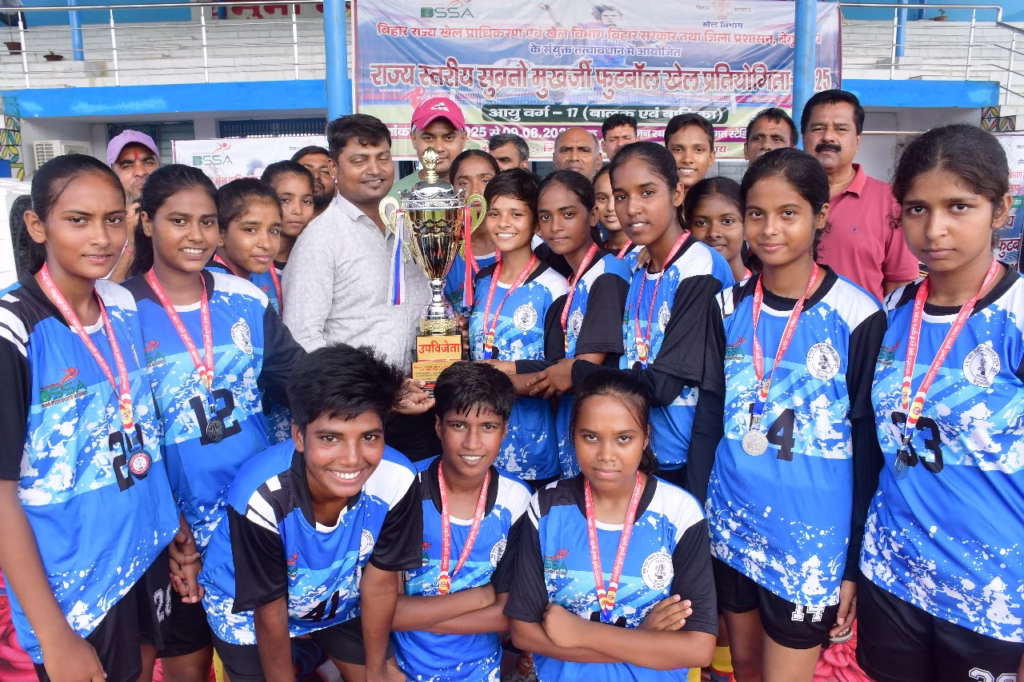 समाचार विचार/बेगूसराय: बिहार राज्य खेल प्राधिकरण एवं खेल विभाग बिहार सरकार तथा जिला प्रशासन बेगूसराय के संयुक्त तत्वाधान में राज्य स्तरीय सुब्रतो मुखर्जी फुटबॉल खेल प्रतियोगिता 2025 अंडर 17 बालिका वर्ग का शानदार समापन आज यमुना भगत स्टेडियम तेघड़ा बेगूसराय में हो गया। शुरू में तो फाइनल मुकाबला काफी कड़ा और कांटों वाला रहा और दोनों ही टीम गोल के लिए पसीने बहाती नज़र आई, लेकिन मैच के अंतिम समय में सिवान ने आक्रामक खेल दिखाते हुए 3 गोल दागे और फाइनल मुकाबला को जीत लिया। सिवान की ओर से रिंकी, रंजना और पिंकी ने अपनी टीम की ओर से 1- 1गोल किया। बेगूसराय की ओर से कोई भी गोल नहीं हुआ।