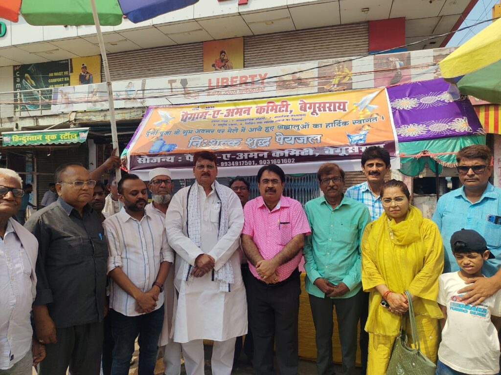 समाचार विचार/बेगूसराय: प्रत्येक वर्ष की भांति इस वर्ष भी जिले की चर्चित सामाजिक संस्था पैगाम-ए-अमन ने दुर्गा पूजा के अवसर पर श्रद्धालुओं की सुविधा का ख्याल रखते हुए शहर के कई महत्वपूर्ण जगहों पर शुद्ध पेय जल का स्टॉल लगाकर नेक पहल की है। मेला घूमने आए महिला, पुरुष और बच्चों की प्यास बुझाने के लिए संस्था के द्वारा किए गए इस पहल की लोग मुक्तकंठ से प्रशंसा कर रहे हैं। पूजा पांडालों में पूजा करने आए श्रद्धालुओं और मेला घूमने आए लोगों को पेयजल स्टॉल के निकट पंक्तिबद्ध कतार देखकर स्थानीय लोगों ने पैगाम-ए-अमन को साधुवाद दिया है। सुदूर ग्रामीण क्षेत्र से मेला घूमने आए महिला पुरुष श्रद्धालुओं की प्यास बुझाने की इस नेक पहल की जितनी प्रशंसा की जाए, वह कम ही होगी।