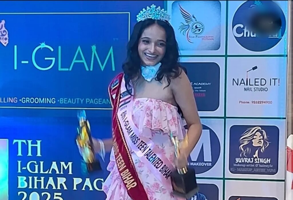 Samachar Vichar/Patna: With unwavering determination and a passion to turn dreams into reality, success often brings fame and glory to individuals. Vidhigya Shree, a student of Bishop Scott Girls’ School, has proven this to be true, bringing pride not only to her family but also to society. In a grand ceremony held at the Red Velvet hotel in Patna, Vidhigya Shree was crowned Miss Teen Bihar 2025 at the Miss and Mr. Bihar Championship 2025, organized by I-Glam. This prestigious event, known for its modeling, grooming, and beauty pageants, witnessed participation from various districts of Bihar.