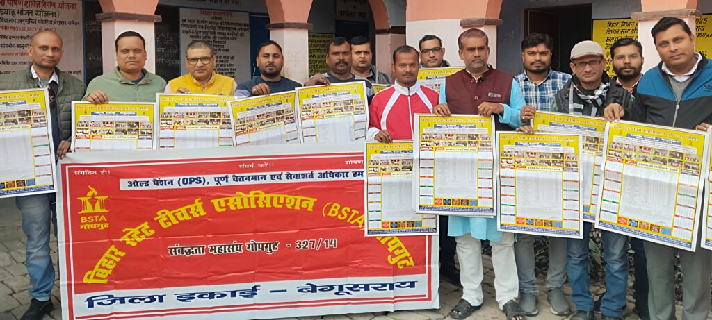 समाचार विचार/बेगूसराय: बसंत पंचमी के मौके पर बिहार स्टेट टीचर्स एसोसिएशन गोपगुट जिला ईकाई बेगूसराय ने अवकाश तालिका से सुसज्जित वार्षिक कैलेंडर का लोकार्पण किया। अनुसूचित मध्य विद्यालय पोखरिया के प्रांगण में संघ के कैलेंडर को जारी करते हुए संगठन के जिला अध्यक्ष मुकेश कुमार मिश्र ने कहा कि जिले के शिक्षक सरकारी विद्यालयों में गुणवत्तापूर्ण शिक्षा को लेकर कृत संकल्पित हैं। विभागीय निदेशों के समेकित अनुपालन के बावजूद शिक्षक समस्याओं को लेकर विभागीय रूख उदासीनता का शिकार है। बिहार के सरकारी प्रशिक्षण कालेजों से प्रशिक्षित शिक्षकों को माननीय उच्च न्यायालय पटना के द्वारा विरमन तिथि से ग्रेड पे देने के निर्णय के बावजूद पदाधिकारियों के स्तर पर मामले को लटकाया जा रहा है। जिले के भीतर विशिष्ट शिक्षक लंबे समय से प्रशिक्षण को लेकर प्रतीक्षारत हैं लेकिन विभागीय जड़ता कायम है। शिक्षकों ने विभागीय उदासीनता को लेकर गहरी निराशा है।